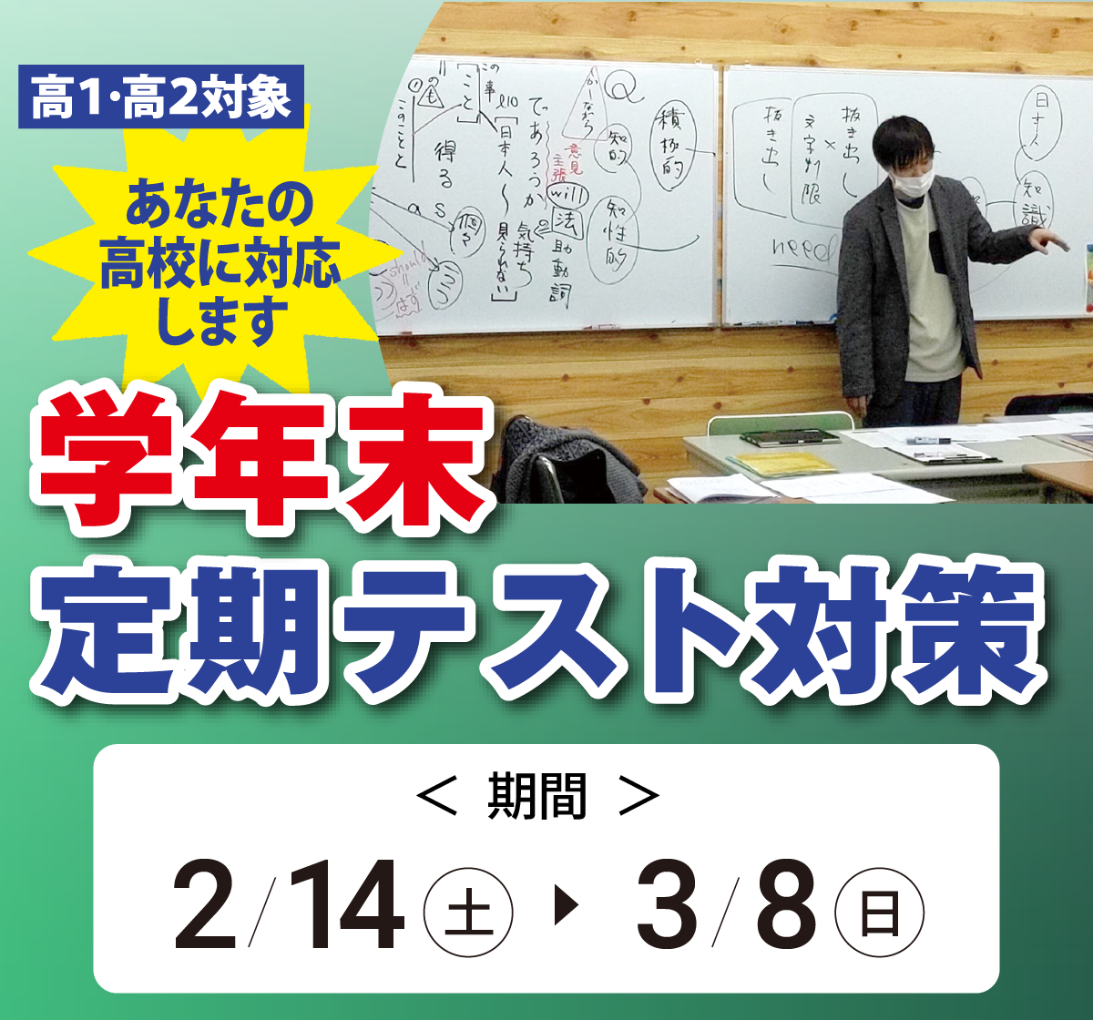 ※「学年末定期テスト対策参加希望」と記載してお申込みください